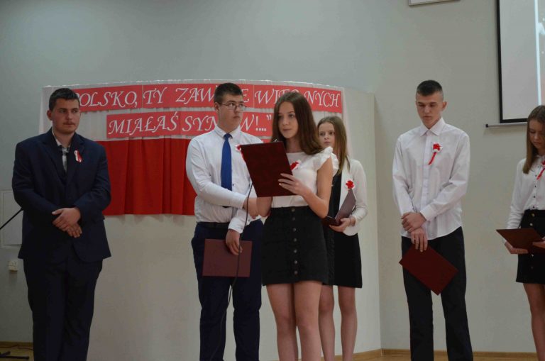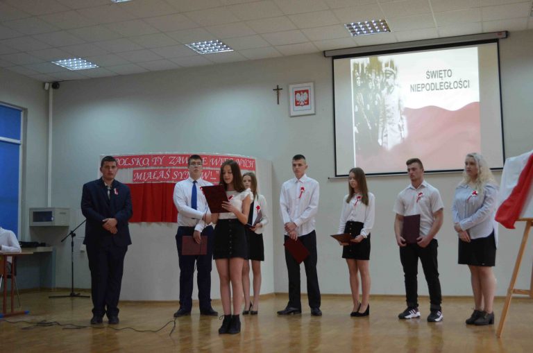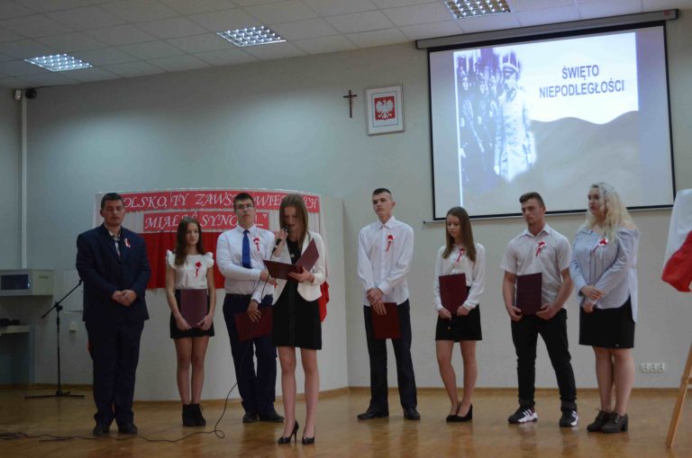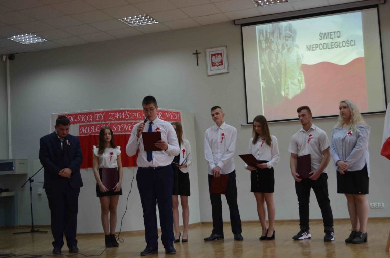 8 listopada 2019 świętowaliśmy 101 rocznicę odzyskania niepodległości, uczniowie klasy II BS r oraz I TŻ przygotowali uroczysty montaż słowno-muzyczny, podczas którego przypomnieli chwile świetności i klęsk naszego państwa, wysłuchaliśmy wszyscy wzruszających recytacji i pieśni patriotycznych. Dzisiejszą uroczystość uświetnił również nowo powstały chór szkolny. Na zakończenie pani dyrektor Maria Baran podziękowała uczniom i ich opiekunom za przygotowanie akademii.