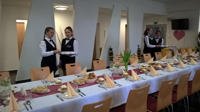 W niedzielę 28 kwietnia 2019 rok w Miejsko-Gminnym Ośrodku Kultury w Oleszycach odbyło się V Spotkanie Pokoleń. Zostaliśmy zaproszeni przez stowarzyszenie „Czas na pomoc” do obsługi gastronomicznej uroczystego spotkania pokoleń. Uczniowie pod opieką pani Joanny Czuwary i pani Agnieszki Nieckarza przygotowali potrawy a zaaranżowane stoły uświetniły tak ważne dla nich święto. Była to kolejna okazja, aby rozwijać swoje kompetencje zawodowe oraz pokazać praktyczne umiejętności w jakich kształci szkoła.