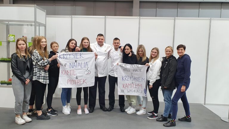 W dniach 25-27 września br. uczennice kl. III TŻ (uczestniczące w Festiwalu Ryb z Roztocza przy obsłudze konkursu nominowanego do Kulinarnego Pucharu Polski „Smaki Galicji”) pod opieką pani Agaty Dudzińskiej i Beaty Kuczek – Niechaj wzięły udział w wycieczce do Poznania. Głównym celem wycieczki był udział w targach POLAGRA 2022 w ramach, których mieliśmy możliwość poznania nowinek w świecie gastronomii, obejrzenia co słychać u lokalnych producentów żywności podczas wydarzenia „Smaki Regionów” oraz obserwacja prestiżowego konkursu kulinarnego, podczas którego wybierano najlepszego kucharza roku. W konkursie startowały dwie drużyny z Podkarpacia – zwycięscy „Smaków Galicji”. Zaprzyjaźnione zespoły mogły liczyć na nasz gorący doping, co wzbudziło podziw nie tylko jury, ale i innych drużyn konkursowych. Podczas wycieczki udało nam się również zwiedzić piękne miasto Poznań, poznać jego historię oraz skosztować oryginalnych rogali świętomarcińskich.